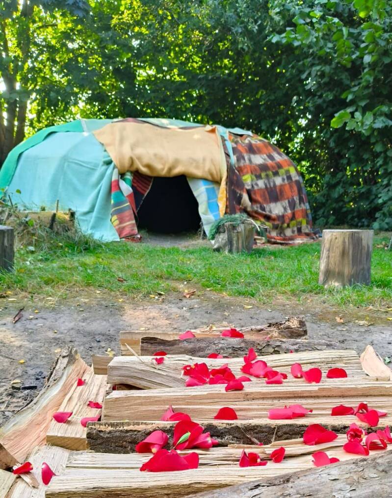 Bij het verlaten van de hut word je symbolisch herboren uit de schoot van moeder aarde. Je stapt opnieuw het leven in, verbonden met jouw authentiek vrouw zijn.