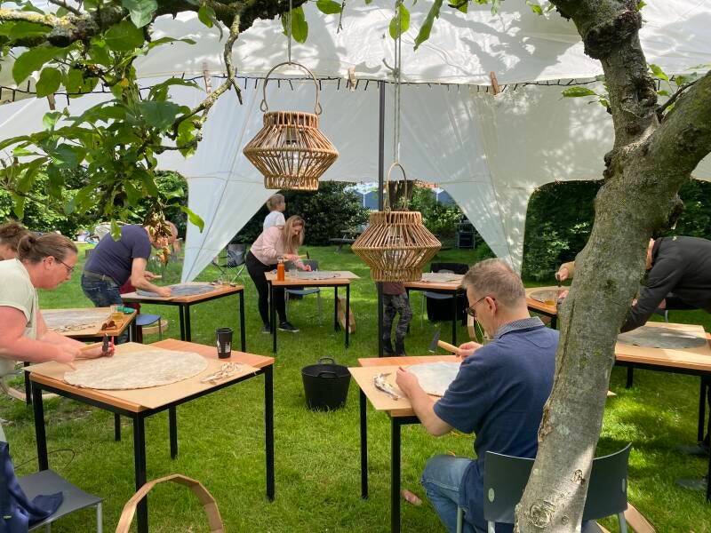 De dag begint met het wassen van de huiden, begeleid door onze adem. In verstilling verbinden we ons met het dier dat zijn huid schenkt. Stap voor stap vervolgen we het bouwen van de drum.